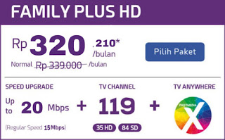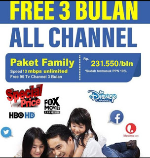 Harga promo Rp.320.210/bulan untuk 12 bulan. Harga Sudah temasuk ppn dan sewa perangkat decorder,router dan modem.