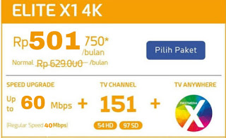 Harga promo Rp.501.930/bulan untuk 12 bulan. Harga Sudah temasuk ppn dan sewa perangkat dekoder,router dan modem.